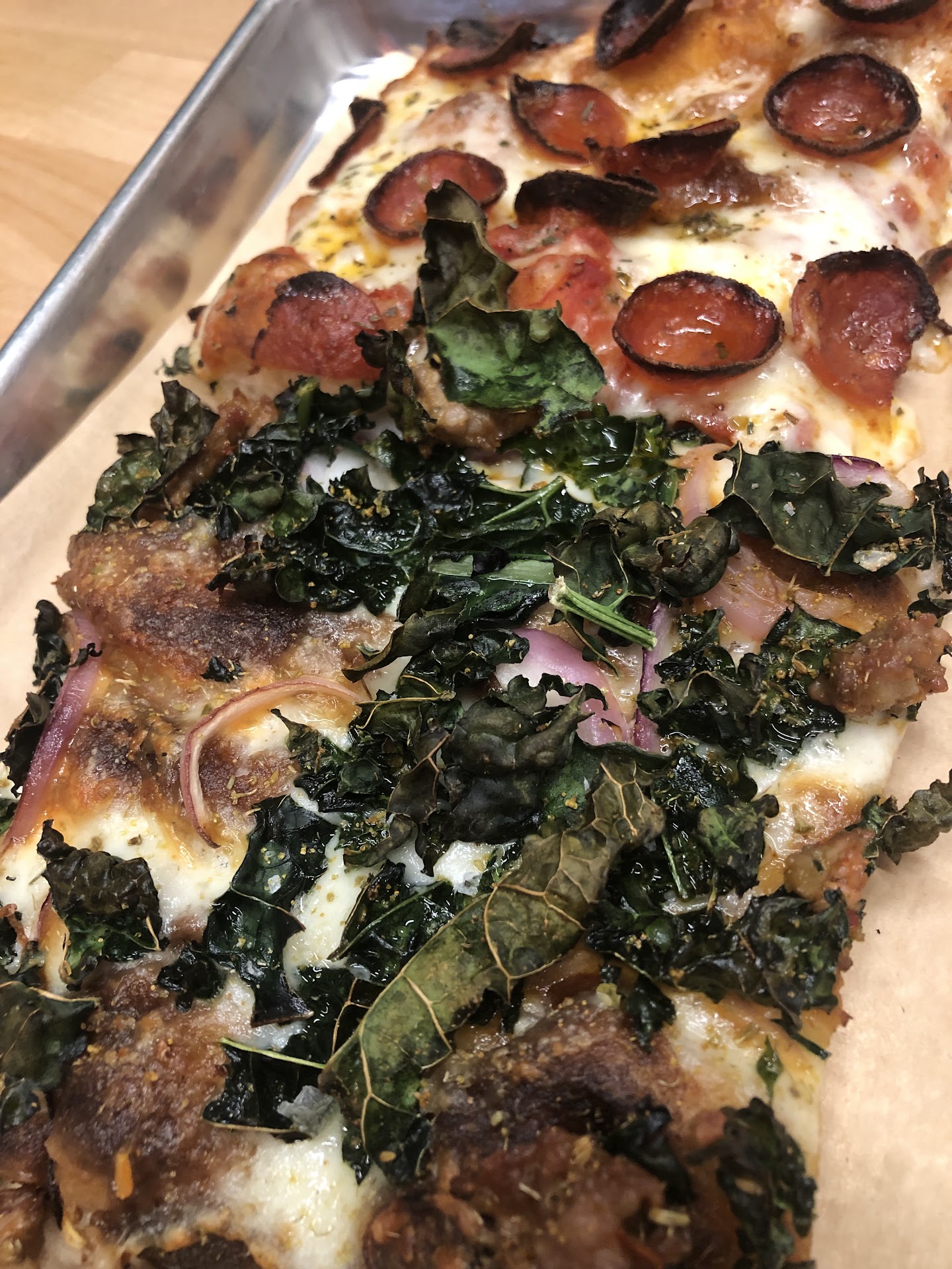 I was very happy with what I ate when I visited the Silver Lake location. The pizza is quite different, fun, tasty, and unique. It is a style of pizza known as "Roman" style which is not common in LA. Roman style refers to the square/rectangle shape and an overall thicker dough/crust. The dough was excellent.