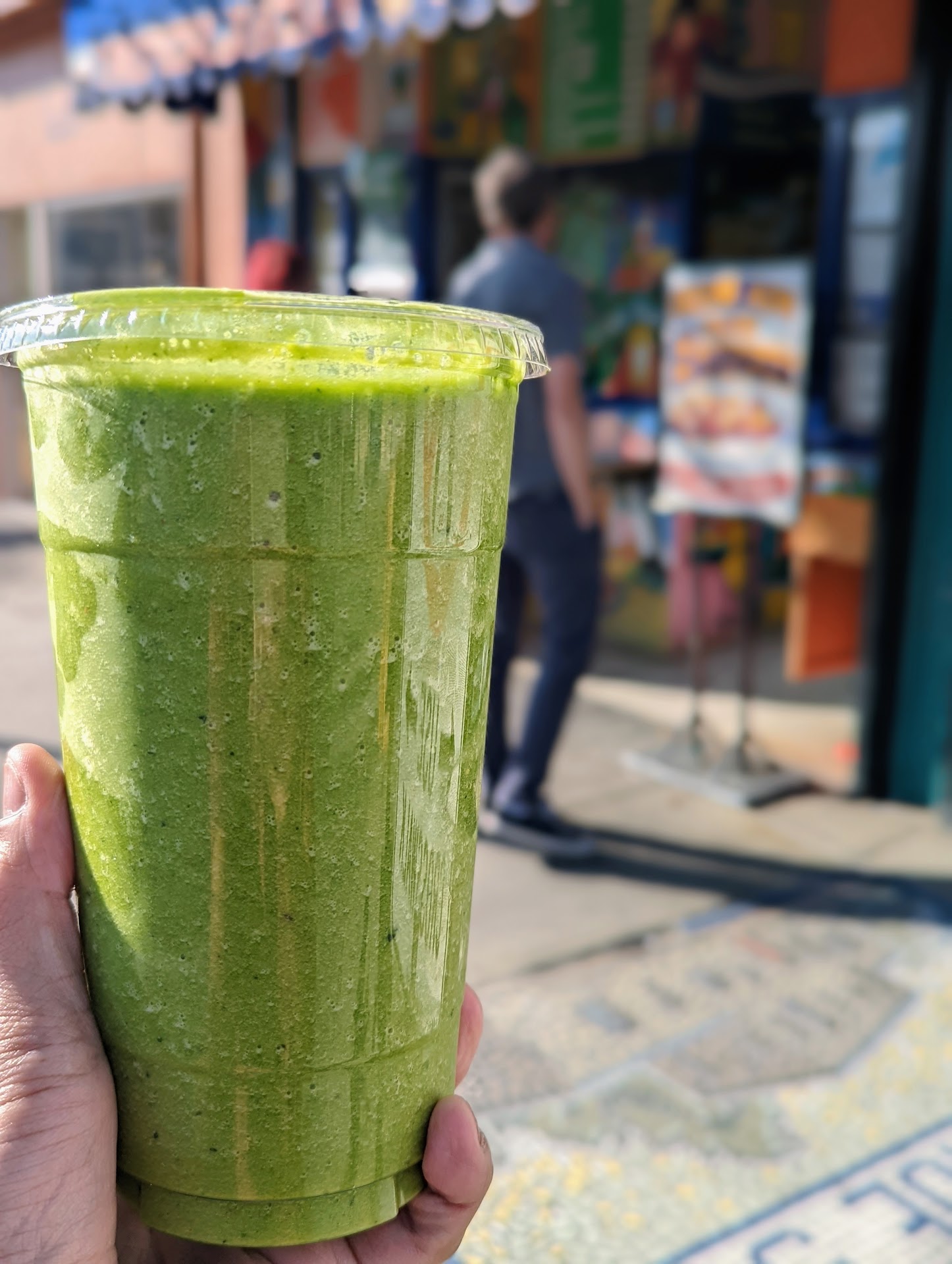 I got a grande Jugo Verde (Green Juice) which is made of Parsley, celery, cucumber, kale, pineapple and spinach. Itās ostensibly good, fresh, and healthy; a perfect drink after an arduous hike. Menu is comprehensive. Precio were fair and competitive. Servicio es rĆ”pido. Plenty of street parking and metered lots.