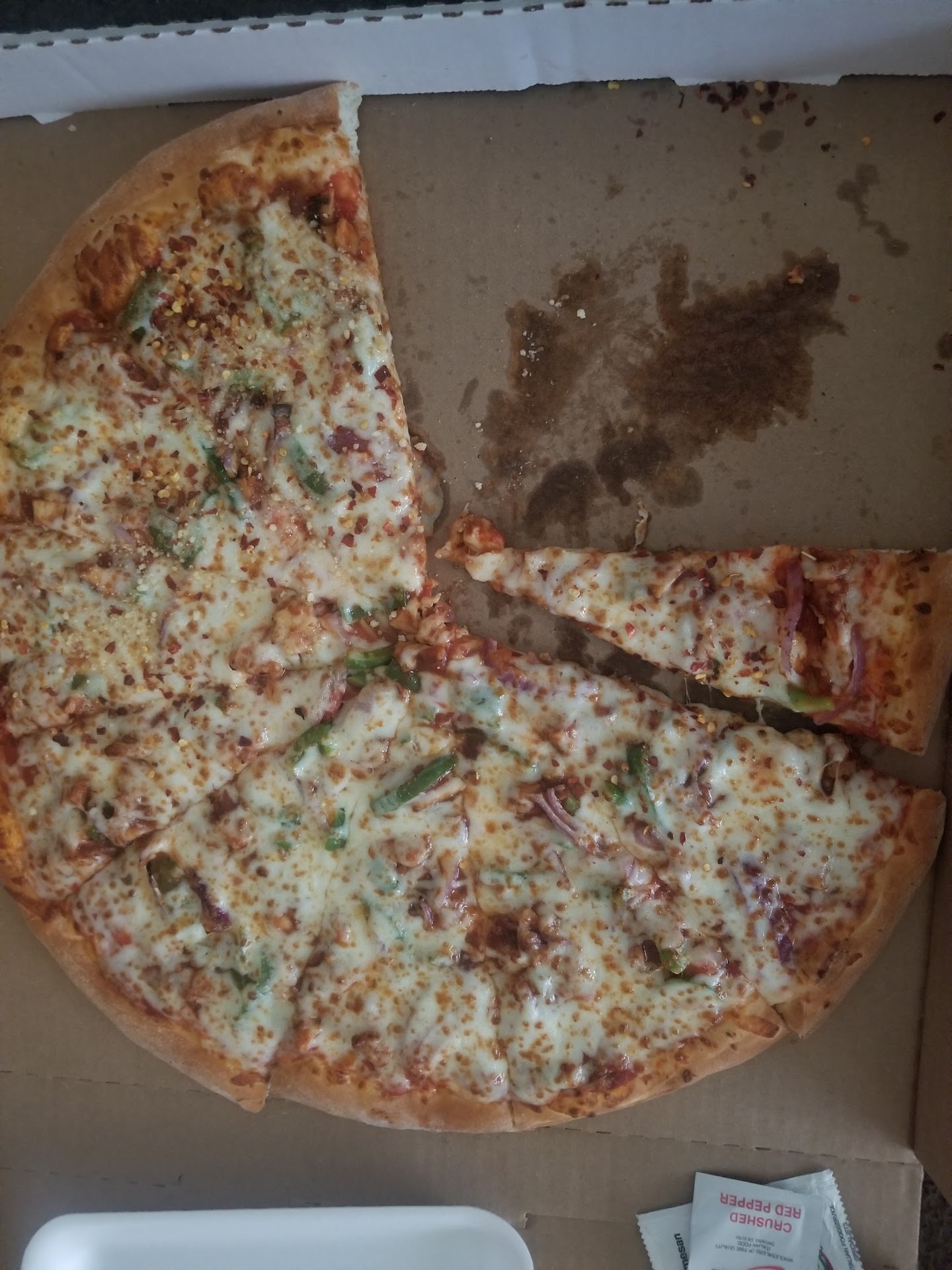 Read moreThey have a very friendly staff. So I'm sorry to be this person but, my husband's hot wings were old. Wings are supposed to be white meat but they were dark.. The bbq chicken pizza wasn't flavorful (like the one we had the day before from tumby's on Western) I tasted the tomato sauce and a hint of bbq on the few pieces of chicken per slice😬.. Not knowing which tumby's he ordered from, I went with this one, but I found out he been stopped coming here due to the lack of quality. He feels like they're dishing out whatever because of the type of customers that area comes with -it is...
