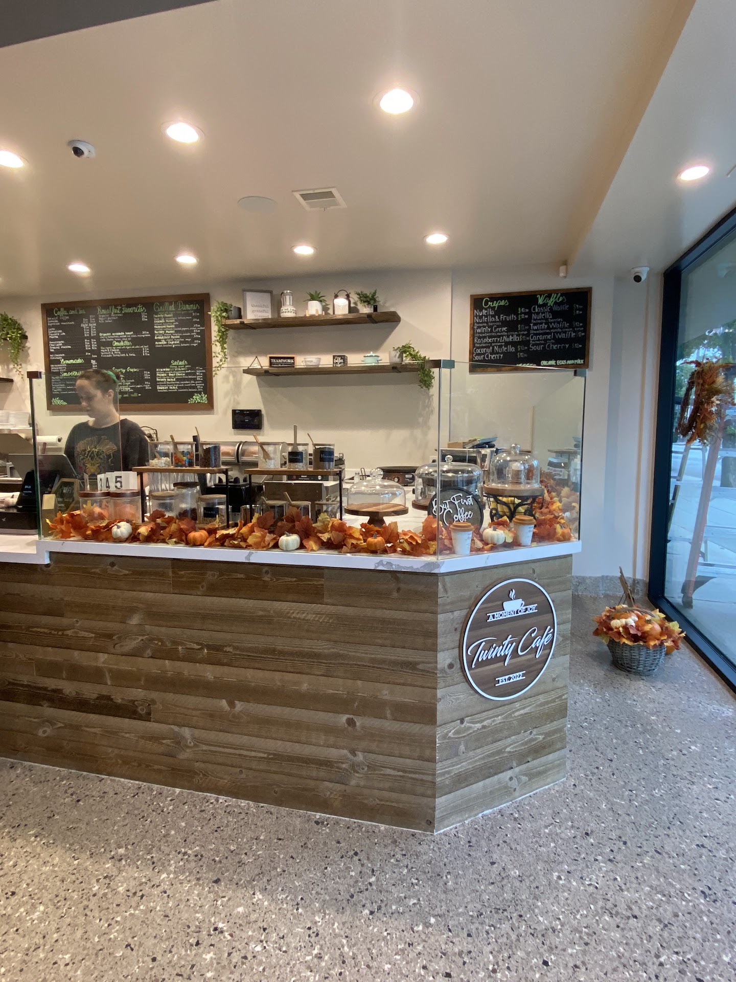 Read moreThis is a lovely spot to enjoy food and coffee with friends or a date - or even a solo date! I have come here to do some journaling over a fun latte and a yummy and beautiful dessert crepe. The staff here are kind and welcoming, and seem like a great team. What really sold me on Twinty Cafe, apart from all of the ways mentioned above, is the lovely connection they have with Friends and Roses next door! It makes me so happy to see each table adorned with a lovely little floral arrangement signifying support for a fellow...