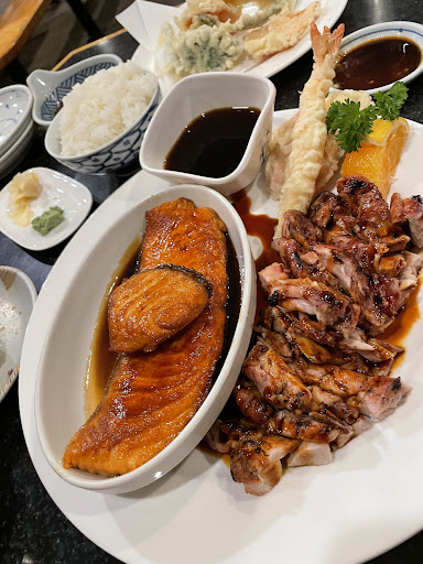 The salmon teriyaki and the chicken teriyaki are also delicious and both generous in portion (you get two main courses with about 36, which is a really great deal imo)! It also came with three pieces of tempura, including two veggies and one shrimp tempura. The fry coating was crispy and the meat texture of fried shrimp was sweet and tender. Their teriyaki sauce has just the right balanced taste of sweet and savory, and it never goes wrong with rice.