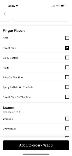 Read moreTo be honest, we order from here often and this past order we ordered chicken fingers with sweet chili sauce on it, not on the side. What we received was plane chicken fingers. The same happened with the buffalo wings that came plane rather than bbq. On the Uber eats app we clicked the correct section as we do it all the time. Foe some reason the manager believed they got it right on their end and that it must be uber eats problem. This is a very sad occurrence because they didn't really care that we received the wrong order and wouldn't help at all. See proof...