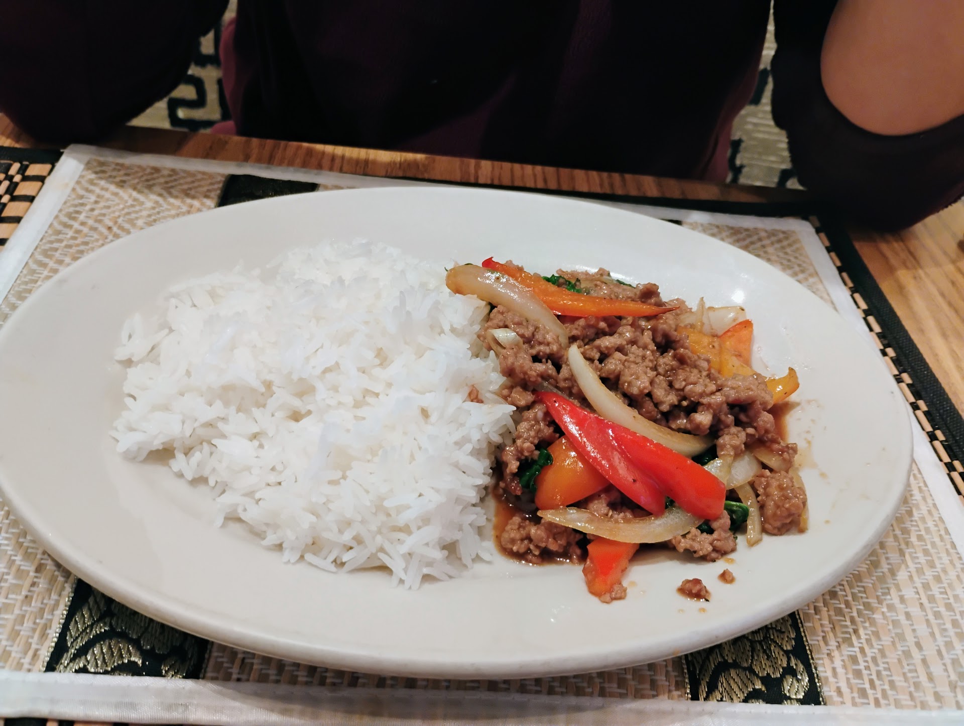I started with a soup with was hot and spicy. It was wonderful. The Egg roll provided was a crispy, and the filling was on the mushy side, but still really good. Then I dug into the main dish, the panang curry; which was creamy and bold on flavor. Usually, restaurants add a lot of coconut milk to dumb down the flavor, but at My Thai, it was as flavor as one would expect. That was honestly a good surprise. But due to the creaminess from the coconut milk, it did add a slight sweetness which was well companied by the thai chili's soaked in vinegar.