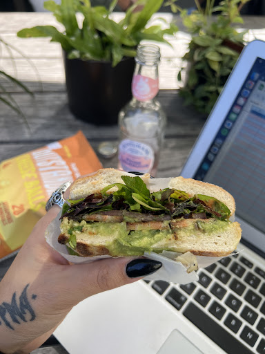 Read moreThis market/cafe has a great space with nice outdoor seating in the back and a wonderful selection of vegan products. I got a cappuccino and almond croissant for breakfast and came back later to get my spouse and myself sandwiches for lunch. The menu there didn’t match the one online but he was willing to make me a custom chikn sando with Tindle vegan chickn. So nice! Everything was so delicious I went back for the breakfast sandwich the following day. The grocery items did seem priced pretty high compared to what I’m used to but it’s a specialty shop so I understand. There were whole shelves of items marked 50% off, too. I was pleased to find some sweets I hadn’t seen anywhere before and enjoyed a nice chocolate turtle bar. They also sold Vego hazelnut chocolate, which I highly recommend (but didn’t buy since I had a (un)healthy supply I’d ordered online). Anyway, go check this place out if you’re...