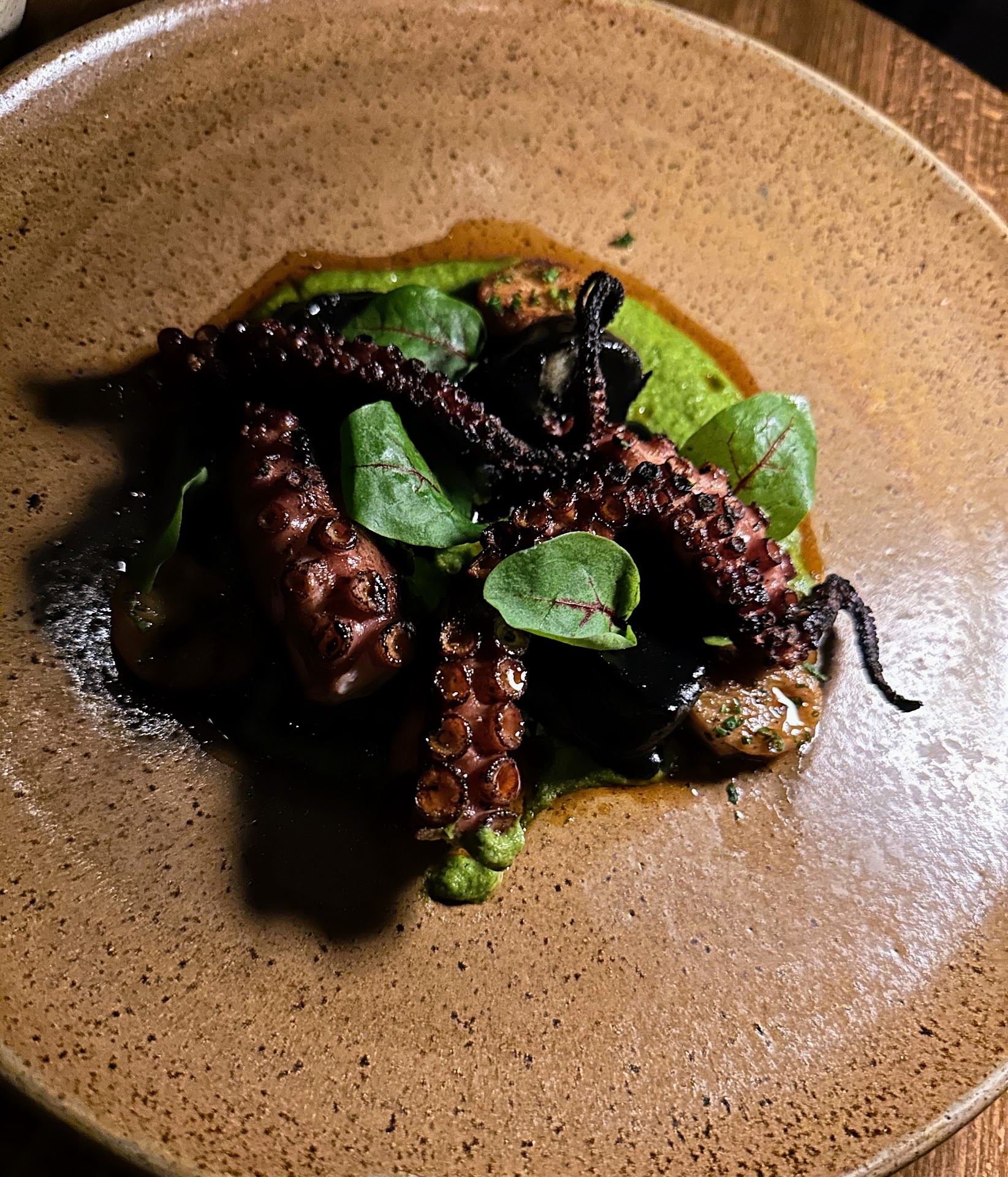 For the seafood fans, I highly suggest the Mediterranean octopus grilled with squid ink potatoes, King Oyster mushrooms, and the best (mild) Peruvian aji outside of Mario's.