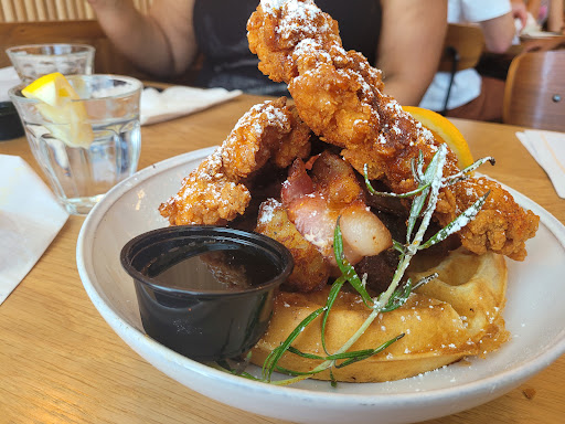 For the price, the portion sizes were great. We had the Vicky breakfast, Fried Chicken sando, and the Chicken & Waffles.