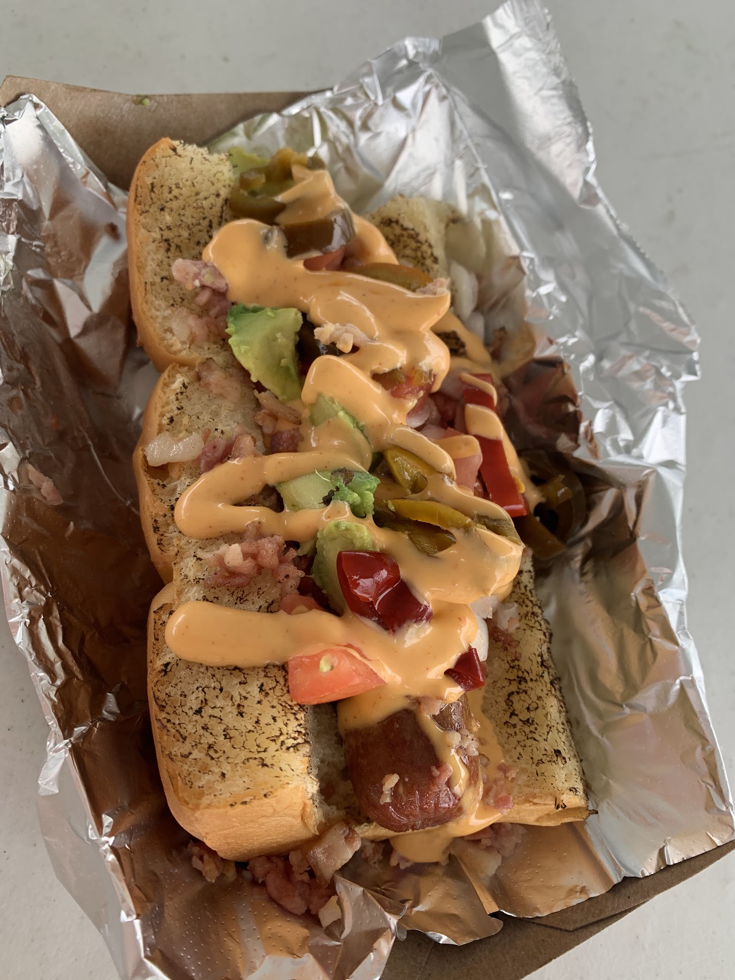 Ordered a couple of their hot dogs with toppings, a side of fries and a beer. Everything came out very fast and it tasted very good. Prices are a bit on the higher end for street food but not a big issue.