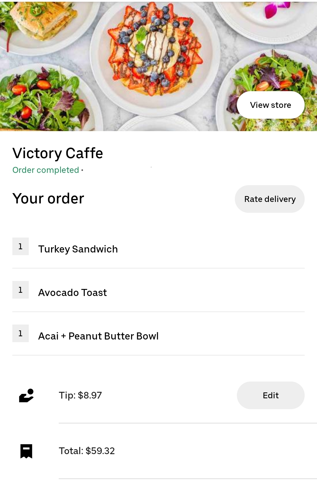 The reviews and pictures fooled me into thinking my order would've been a pleasant experience. I ordered food through Uber Eats and it arrived in a very prompt time. My order consisted of a peanut butter acai bowl, avocado toast, and a turkey and avocado sandwich.