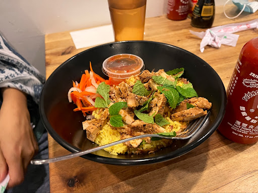 The atmosphere is unpretentious and welcoming, the kind of place where regulars nod at each other over steaming bowls of phở or turmeric-laced bánh mì chao. Service is straightforward and efficient, with no unnecessary frills—just good food brought out quickly and done right. The menu is focused but refined, emphasizing quality over quantity. Their signature dishes, particularly the noodle soups and rice bowls, showcase a balance of flavors that feel both traditional and refreshingly light.