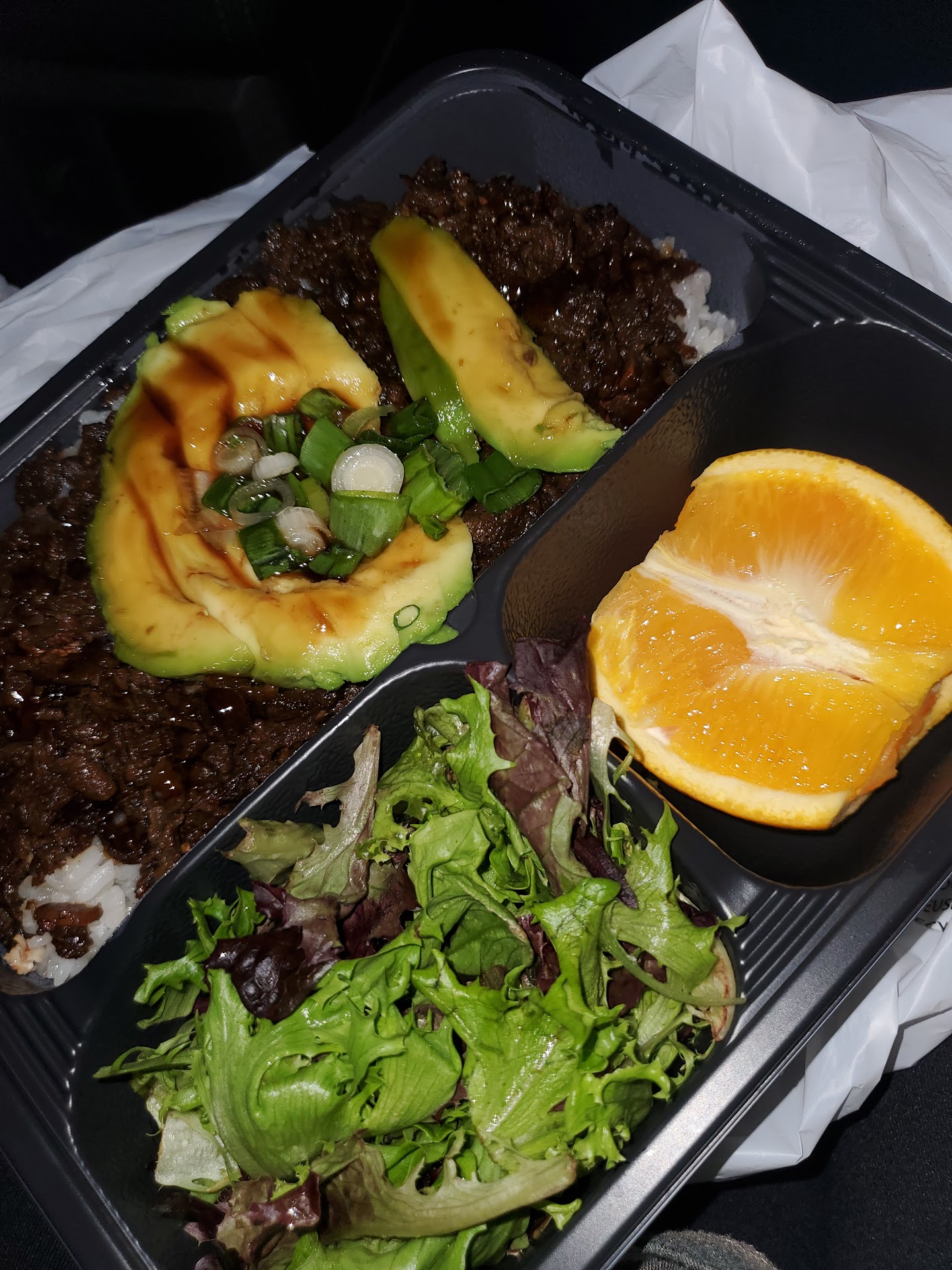 I opted for 1/2 beef, 1/2 chicken combo. The steamed rice was quite good (I think they use calrose). In my opinion, the chicken was better than the beef - I found the beef to overly dry and on the saltier side. The combo was rounded off with a serving of lettuce and an orange wedge. I found that most of the flavor came from the added sauces (teriyaki and salad dressing).