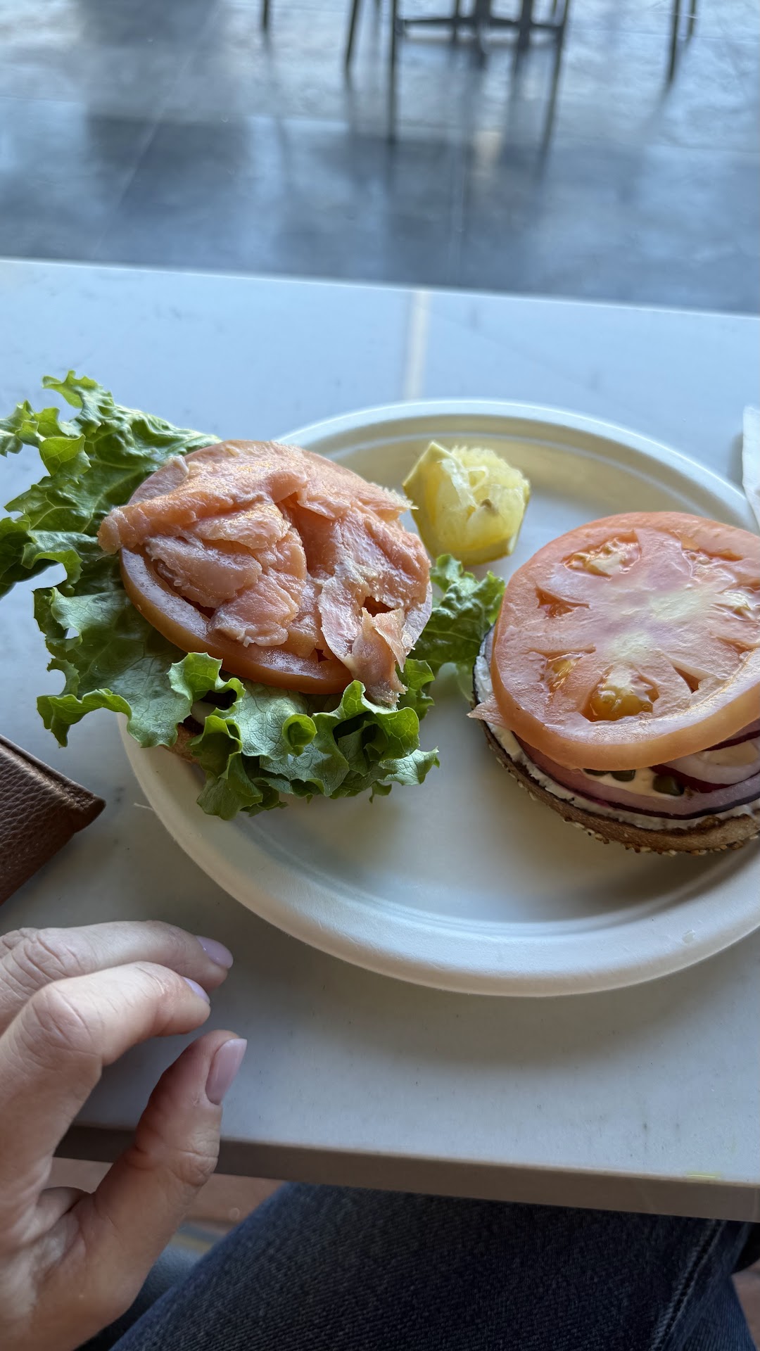 Ordered the 'complete sandwich' (as they call it) - cream cheese, tomato, onion, and lox.