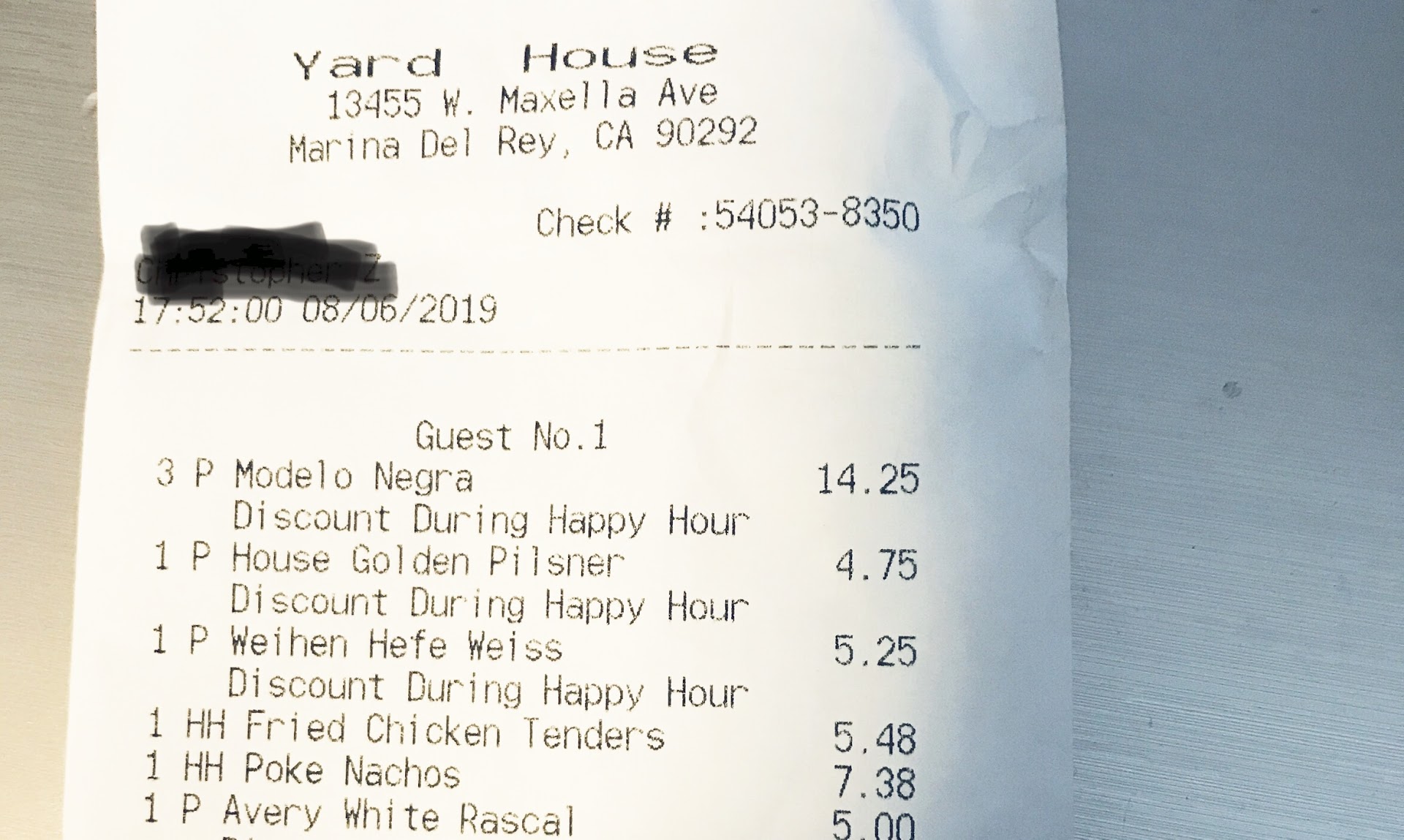 I block out my bartenders name on my check pic, she was wonderful as always,...