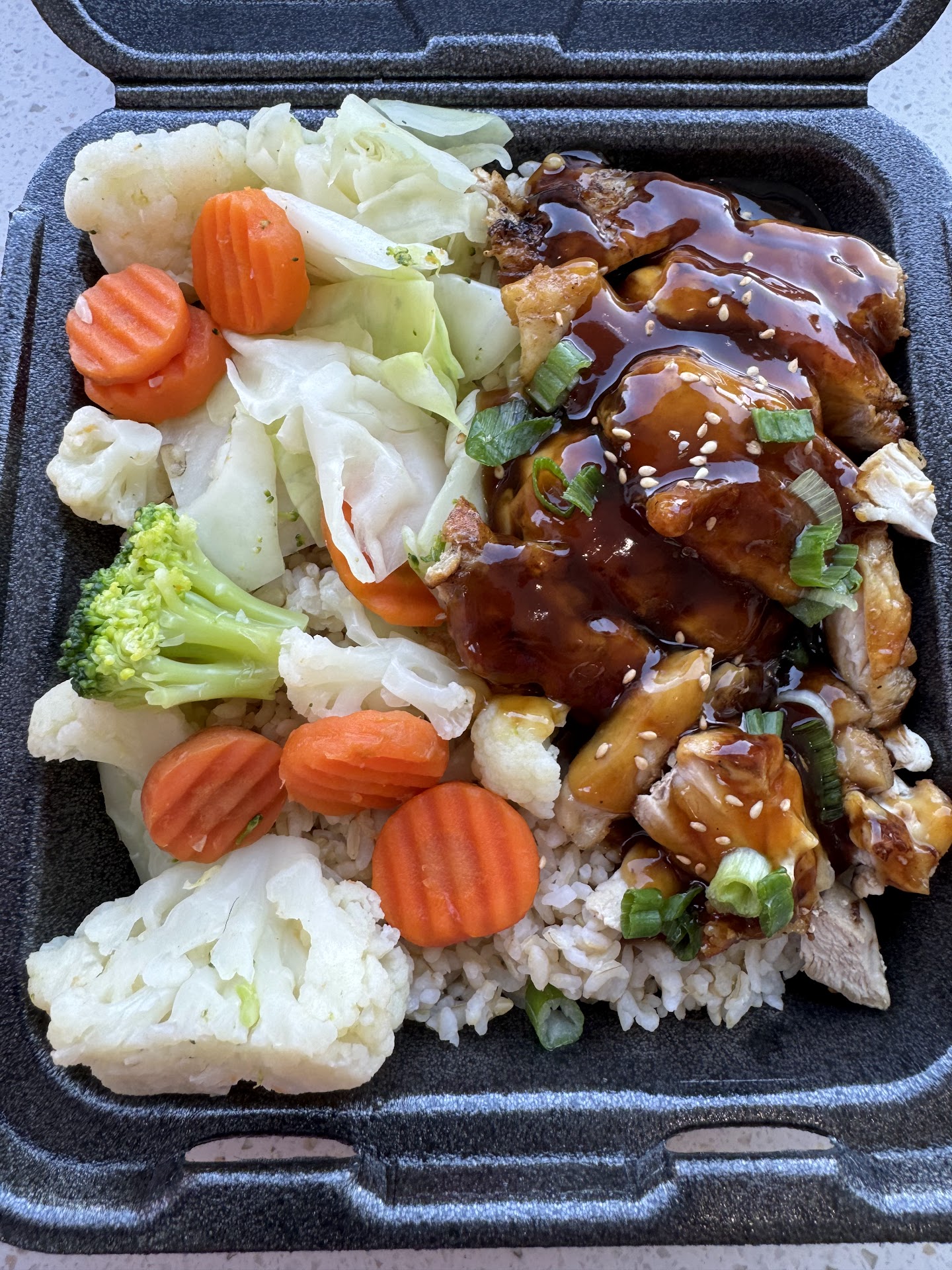 Strike 2: the veggies were predominantly blanched cabbage. Not one broccoli, cauliflower, or carrot in site. The cabbage was so crunchy it was like biting into an apple. It was cabbage spine/stalk. That's just wrong.