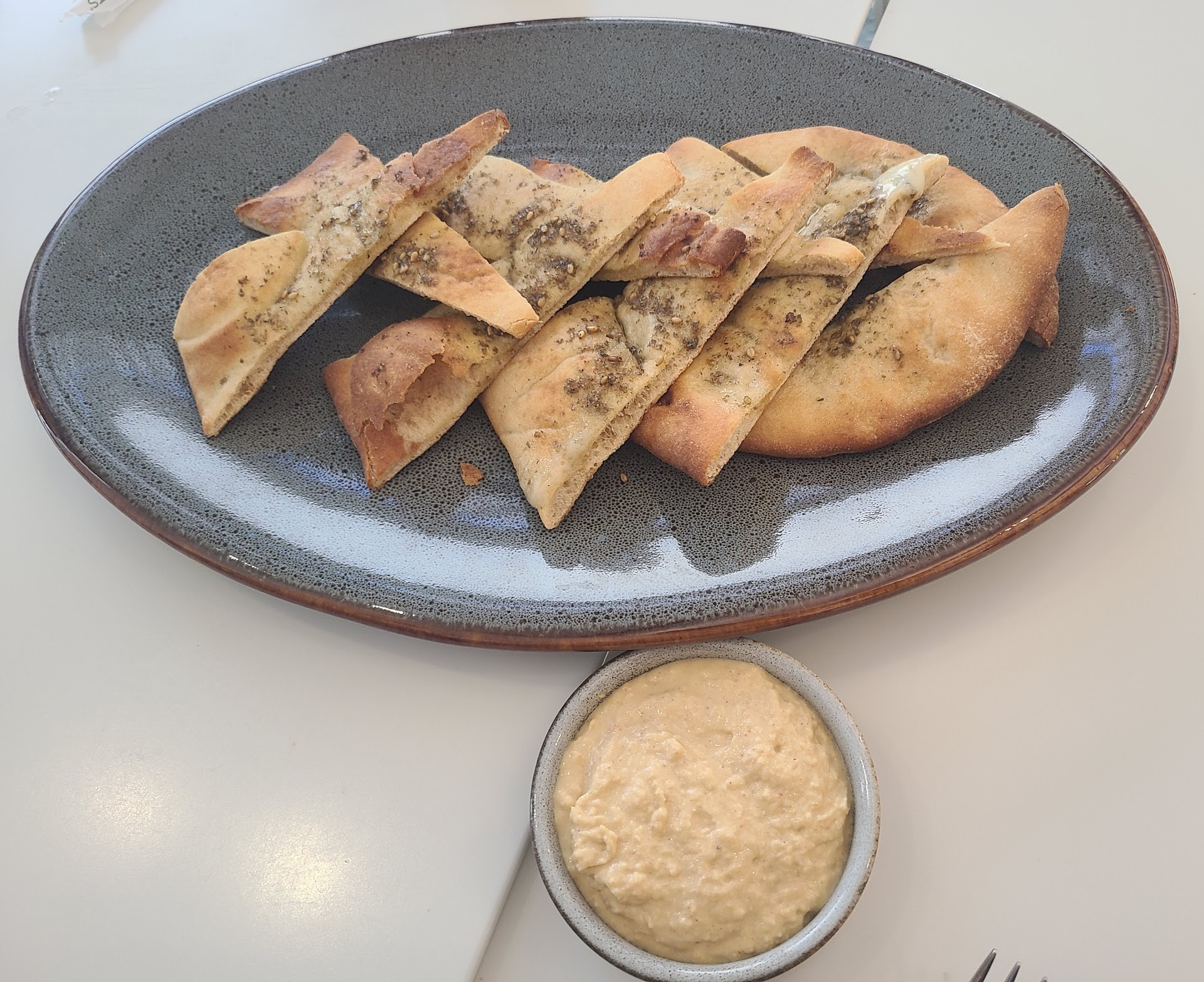 Read moreSomewhat bland space even with its renovation, but pleasant wait staff and interesting menu. Fried dill pickles! Enjoyed the spinach and cheese bourka, one large one with everything bagel sprinkled on top with a tomato and a touch of greens to decorate the plate, and shared the vegetable gratin with mozzarella and tomato sauce and squash (amazingly not mushy) and eggplant....