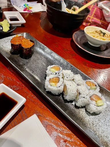 Now the food... Is "meh", you won't be having the "mmm's" when eating here. Tired chicken yakisoba, and the taste is ordinary, chewy chicken, not special at all. Ordered California rolls and it was regular sushi with no dressing. Soft drinks are $3.5 each. Water tastes like high school water fountain. Overall, the food is not the main reason you will be here...