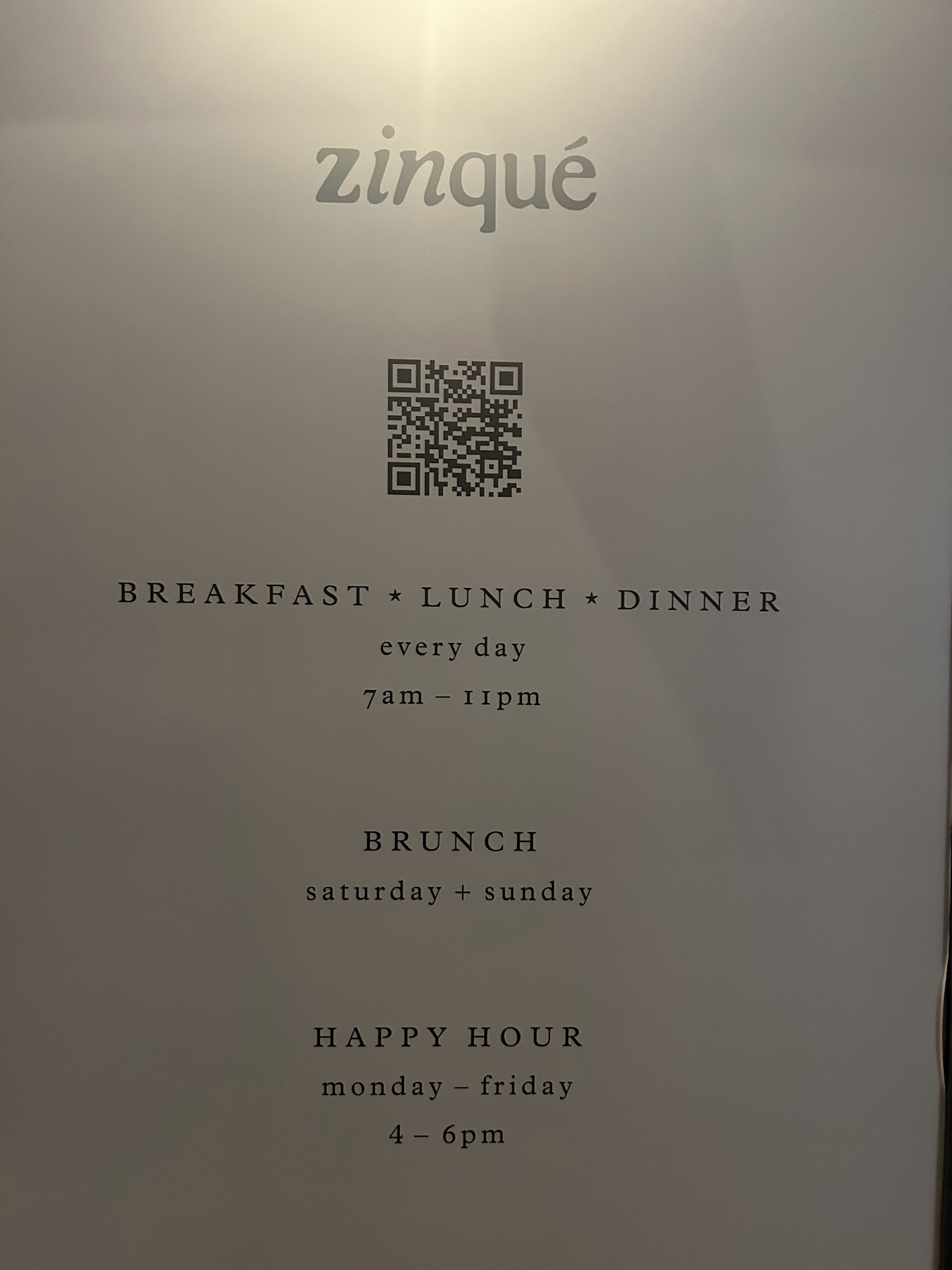Read moreFood was great. (Salads, steak, quiche, salmon….. all lovely). We had two waiters. The first waiter took way too long to return to our table. At one point we had to waive our first waiter down and when we did, in a rude tone he said “I’m done for the night someone else has you”. Note to Management: Please conduct a refresher training on how to properly hand your table over to another waiter???????? He didn’t even tell us he was leaving so it was news to us. He didn’t even brief the new waiter to tell him where in the dining process we were so the new waiter was completely lost when he came to the table not knowing we hadn’t ordered our main courses yet. He just brought us the check. We had so much more to order. I was embarrassed for the brand. Quite shocked. The first waiter killed the vibe a bit. The second waiter was nicer but also didn’t come back to the table often enough. We did end up ordering our entrees but we were never asked if we wanted something more to drink. We were never asked if we wanted dessert. The restaurant was empty so there is no excuse. Disappointed. So much effort is put into designing, building and launching restaurants. It was sad to see our guest experience tossed around. This is what makes guests decide to...