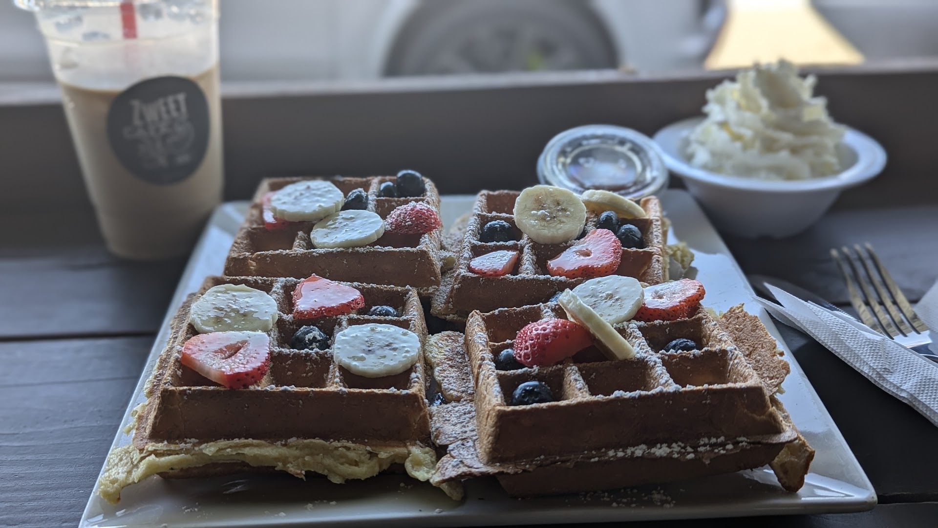 Apart from their impressive amount of indoor and outdoor space, they’ve also got an impressive food and drink menu! A rotating food menu, so that means there is plenty of opportunity to get your fill of every recipe comprised of healthy, organic options and homemade ingredients, in which a majority can also be made as alternative gluten-free variation. Beverages include an array of organic loose-leaf teas, classic recipes, and a few hidden gems that’ll pique your interest. I chose to get an iced version of Steph’s Strawberry Mocha, which pretty much was a gloriously decadent liquid chocolate covered strawberry that I have zero shame in still having dreams about. Zweet has many amazing things that will without a doubt provide you with a positive experience. Don’t miss out on visiting this lovely gem next time you’r...