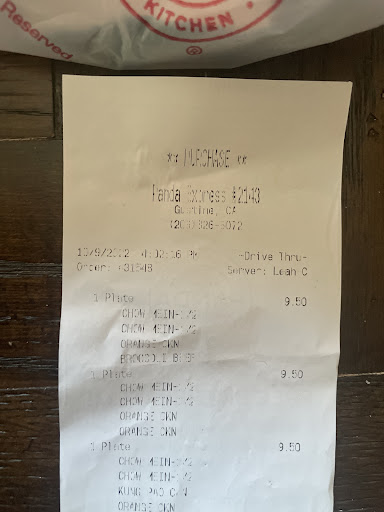 I placed an order for 3 plates of food and 2 orders of cheese Rangoons. I was told to wait in the parking lot for 5 minutes for my order. 20 minutes later the rude girl comes out and says nothing just hands me the food. I get home and 2 of my orders are wrong and Iâm missing an order of Rangoon. I called the location where I got the food to ask for a refund and the âmanagerâ there was beyond unprofessional. I told her I couldnât read the order number off the receipt because the ink must have been running low so the numbers donât show completely. Regardless I tried reading it to her and she said I was lying because she was looking at a receipt in front of her and it was fine. She claimed that she remembered me and my order even though she wasnât the one who took my order or brought it out to me and she claims that since she remembers my order she knows Iâm lying and wasnât there for 20 minutes. I asked for the number for corporate and she gave me the number for the survey which I told her didnât work and she said âwell I canât help you thenâ and just hung up . So beyond unprofessional and completely disappointed with the kind of people that are hired....