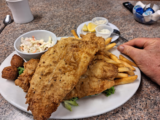 Read moreMe and my family discovered this place while here duck hunting. We were looking for a good old fashioned burger and fries, not fast food. Great old fashioned food for a great price. Milkshakes are delicious. We went for dinner one evening and then came back for breakfast the next morning. We had the same waitress from the night before. She was fast, friendly, and checked on us often. Her feet must have been on fire she was working so fast. No wonder she was in good shape with all the running around she did. She wore a black Bebe baseball cap both days. Her breakfast shift coworker however was not pulling her own weight. She was a heavier set lady with brown hair maybe in her 50's. She stayed behind counter talking mostly. We saw her take food out maybe once and refill one coffee. We felt bad for our waitress so made sure we tipped her well and told her what a great job...