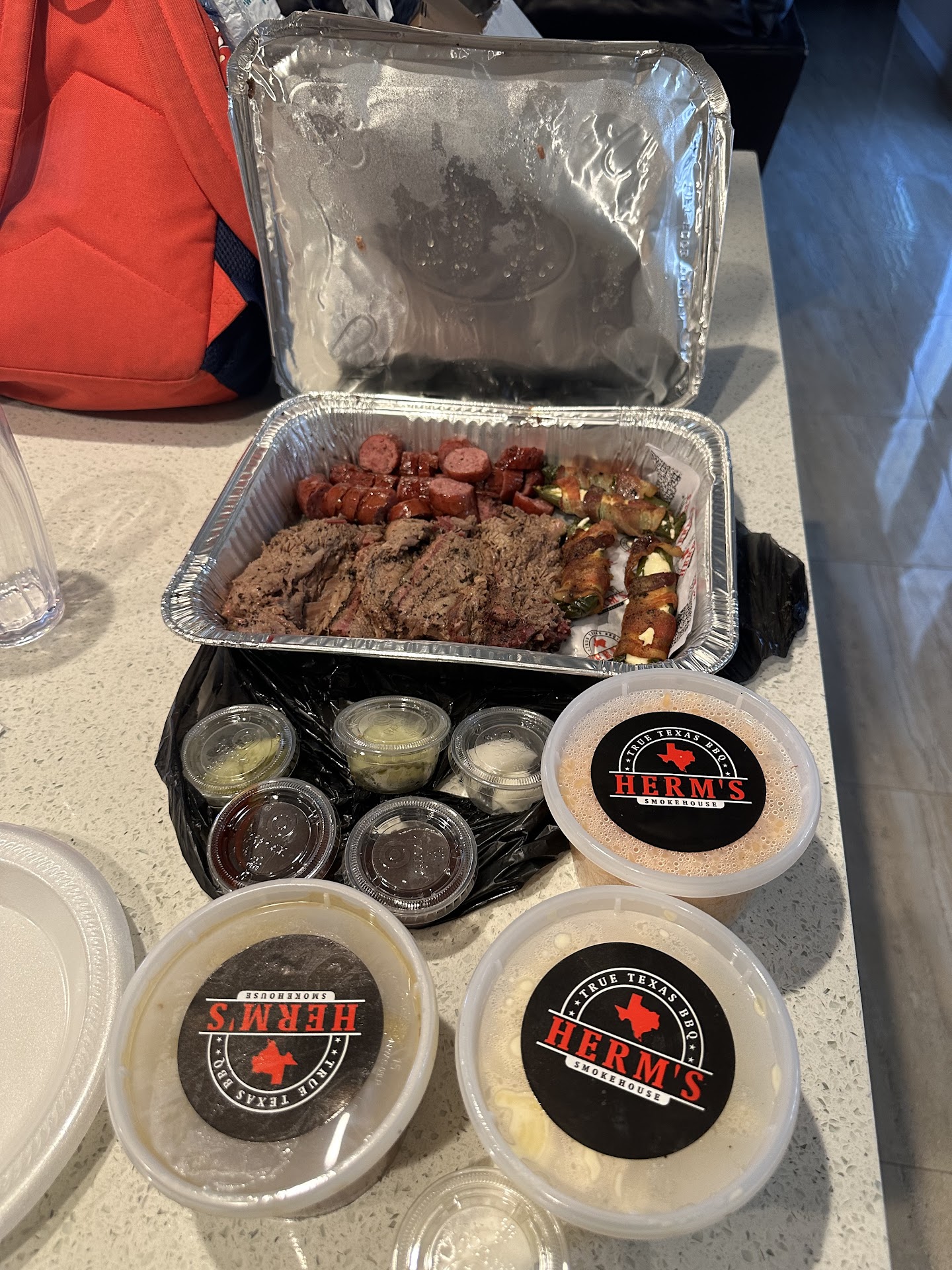 My personal favorite for breakfast is the David & Goliath taco. For lunch, I have a solid rotation going with the Brisket Nachos, Loaded Spud, Taste of Herm’s, the Last Supper taco, and I always need a little something sweet after - the banana pudding. And trust me—they do NOT hold back on the meats. Every time I go or send someone else to pick up Herm’s, it’s ALWAYS a GENEROUS portion.