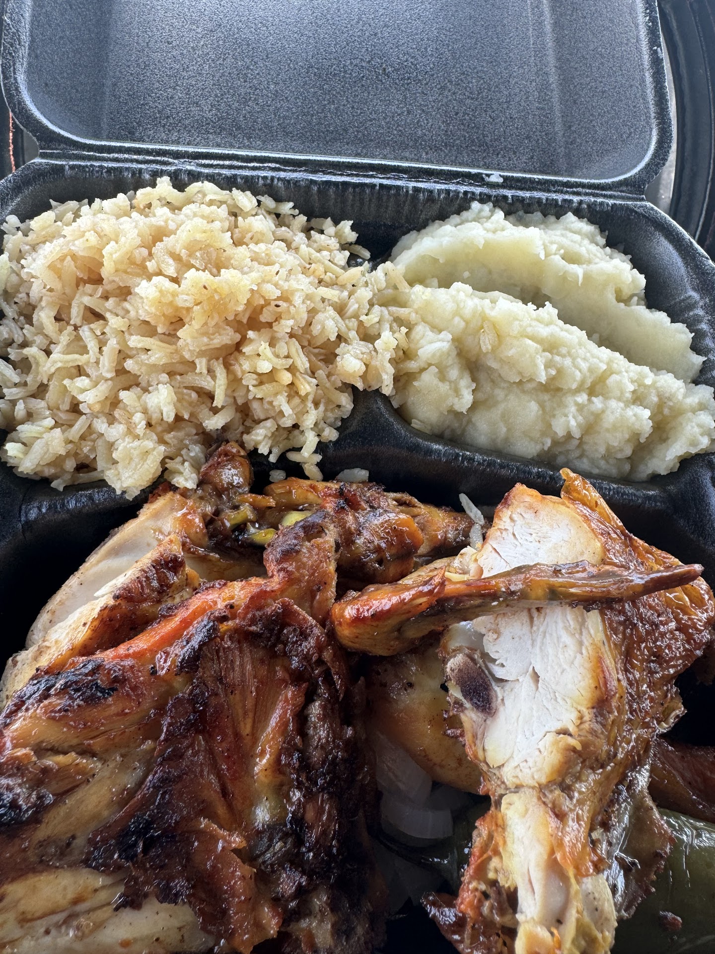 I ordered the #2, Included 1 whole chicken grilled whole and quartered afte, making it super juicy. Also included beef finger ribs, and OMG!! Ahhhhmazzzing!!! My husband prides himself on his bbq and we will tell you whoever is the grill master is top notch!! It came with mashed potatoes, rice, beans, tortillas and salsa. The salsa were 2 types and they were garlicky and tangy. Stop here and order without fear, you...