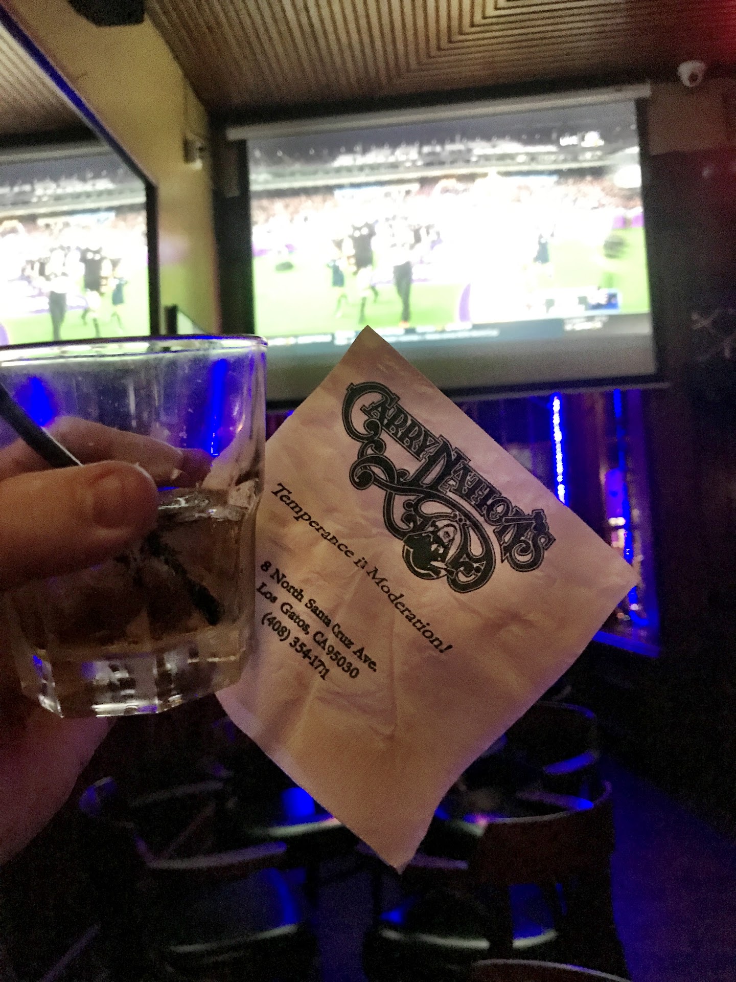 Read moreA nice bar with a varied crowd. There's plenty of seating and they have happy hour drinks and food. One side benefit of Carry Nations is it's right across from Pizza My Heart which makes it easy to grab a cheap slice between drinks. I've been there with larger groups and it didn't seem crowded. The bathrooms are downstairs which can be tricky after a few drinks...watch yer step. The drink prices are a bit higher than I usually pay but it's Los Gatos so...Lo$...