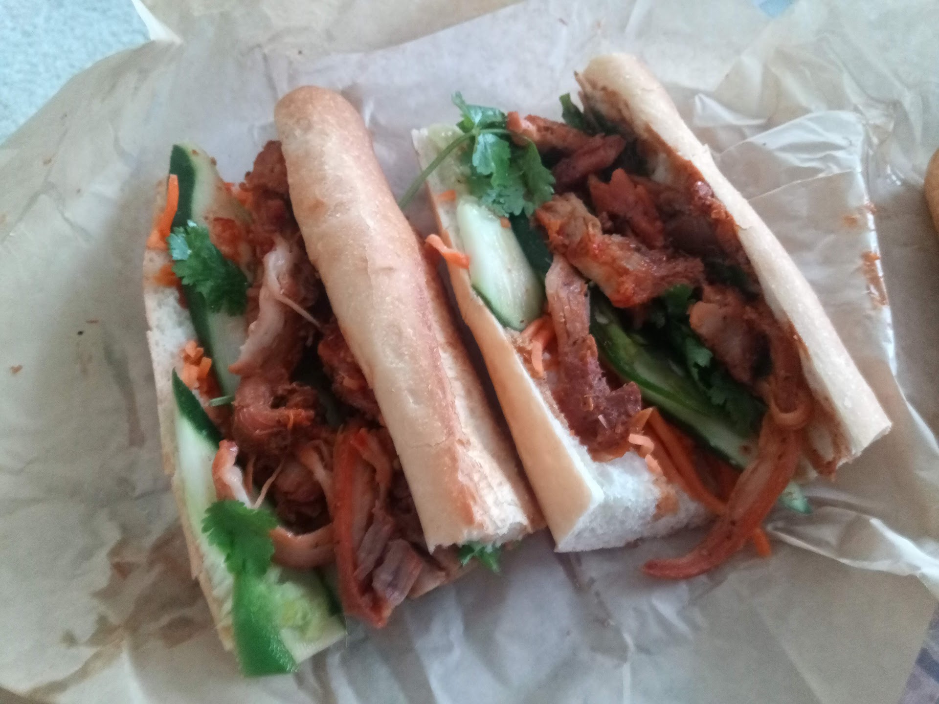 The shop is a little hard to find tucked in with a bunch of offices but is really good. We had the Vietnamese grilled pork and shredded chicken sandwiches and they were both really tasty. I was also surprised at how big the portion was too. Seemed like each order was 2 sandwiches from other places. The flavor of the shredded chicken and grilled pork were great! The pickled carrots were perfect too. Didn't take very long for them take prepare the order. It is also nice that you can see the people preparing the orders right behind the counter and the person at the register was super nice.
