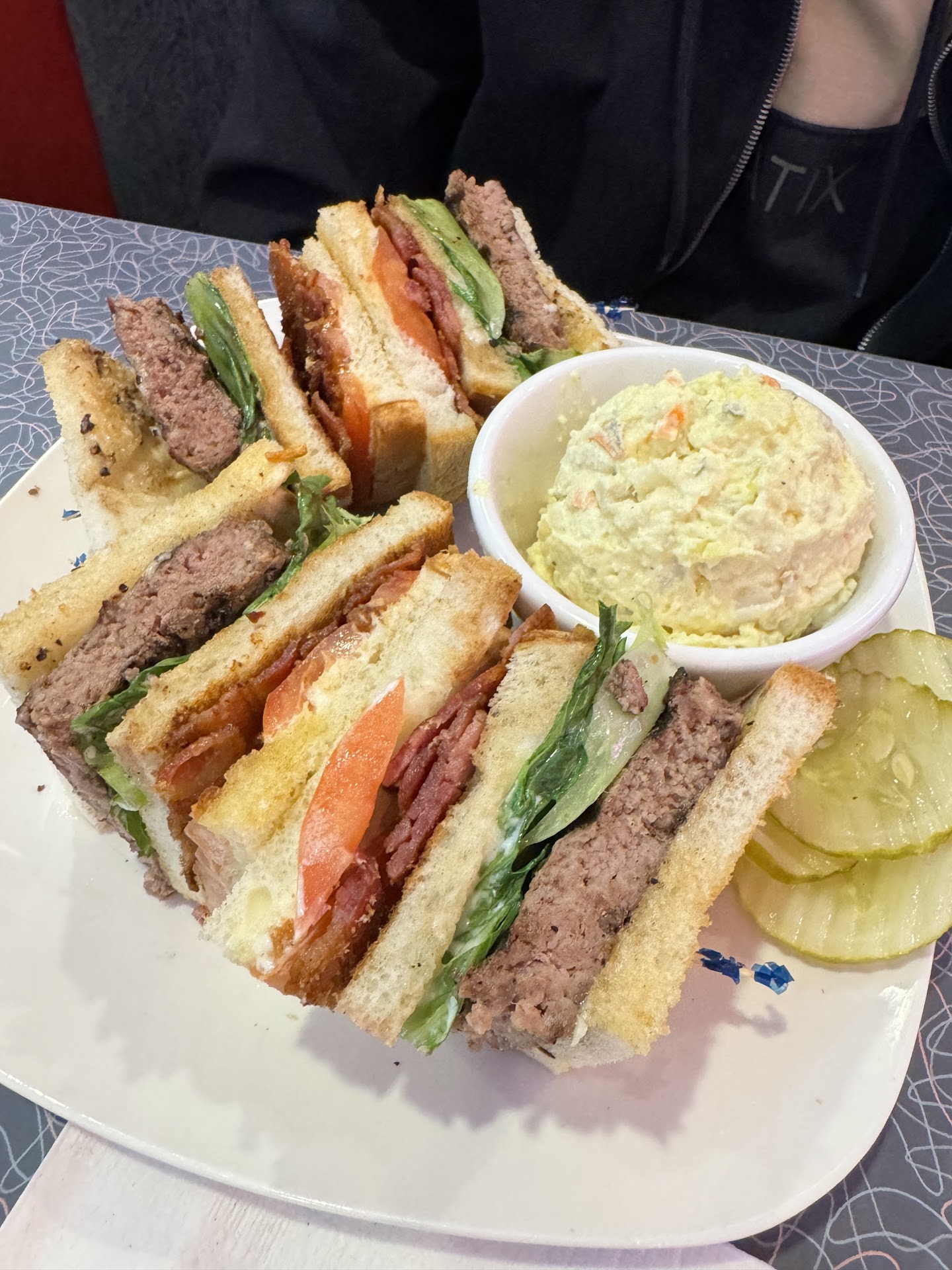 My recent visit to this cafe marked my second attempt to give it a chance, hoping for a better experience than the first. Unfortunately, the outcome left much to be desired. I ordered the chicken avocado sandwich and the soup of the day. While my sandwich was satisfactory, the same cannot be said for the soup, which disappointed both in presentation and taste.However, my friend's experience was less than ideal. He ordered the cheeseburger club sandwich, but upon inspection, it was evident that the beef had been poorly cooked and emitted an unpleasant odor. It seemed like the meat had gone bad before it even made its way to the grill. We brought this issue to the attention of our server, expecting some form of resolution. Regrettably, her response was a simple apology, and nothing more. She didn't offer any alternatives, such as a complimentary dessert or the removal of the subpar sandwich from the bill. The lack of effort to address the problem left us disappointed and feeling undervalued as customers. Despite our attempt to give this place a second chance, it seems that our experience remains unsatisfactory. The lack of proactive measures to rectify the situation leaves us hesitant to return, as it appears our concerns were not genuinely acknowledged...