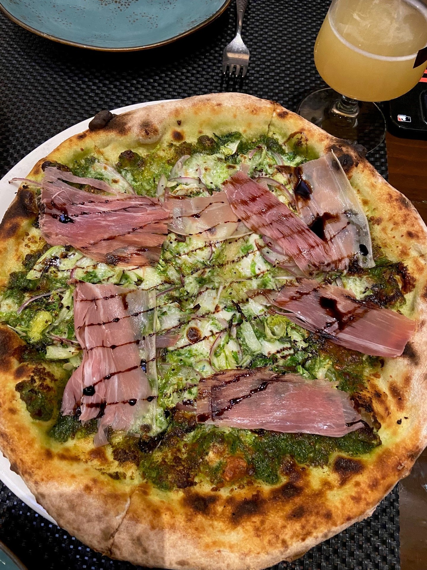 Even for a Tuesday night, it was pretty busy. We had reservations and were seated pretty quickly. Upon arrival, we were greeted by a tall young lady whose name I did not get. She had a warm smile and quickly took us to our table, where Sidney greeted us and took our drink orders (no hard alcohol that I could see, just wine, beer and bubbles). I opted for a glass of prosecco, which was $12 and filled to the brim; the hubby had a beer from a brewery he liked. We ordered a pizza (prosciutto w/balsamic glaze) and pasta (tagliatelle bolognese) to share; this was more than enough. Don’t think there was complimentary bread, but it was not needed. The portions here are big and I’m pretty sure the pastas are handmade. For dessert we shared a sundae, simple yes, but super tasty. The brownie and ice cream were made of good quality.