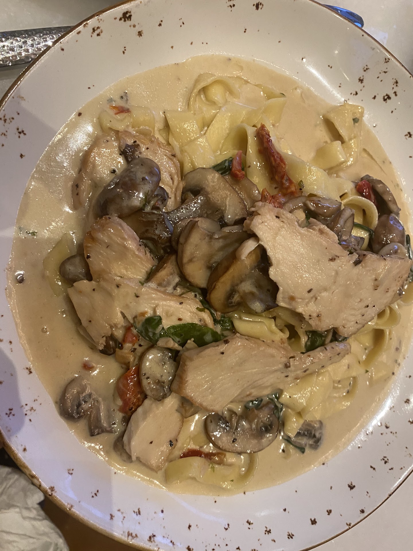 For our main courses my wife ordered the Tagliatelle & Truffle Cream sauce with Chicken. She said it was incredible. The pasta, made in house was perfect and the truffle was not overpowering.