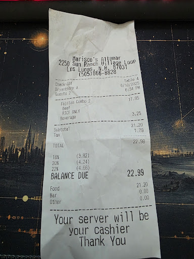 Read moreThey have a wide variety of Mexican cuisine here, including Mexican seafood. Our favorites are the Tilapia and Marisco's Specialty Plate. We have always really enjoyed the food here. We would recommend going after 5 or 6 in the evening, though, as the wait staff in the evenings is much more attentive than the wait staff during the day. We have always gone in the evenings, and the wait staff has always been awesome! They are very attentive and always make sure all customers are taken care of. Today was the first time we have gone during the day. It was slower than when we normally go but the wait staff was terrible. Our waitress kept forgetting things from our order and kept bringing the wrong things. We were never able to get drink refills as she never bothered to check on our table throughout the whole meal. We opted out of dessert and decided to go somewhere else for dessert as we did not feel like waiting an extra 30 minutes or more for her to show back up. This was very disappointing as the food was still very much up to standard, but the service was extremely lacking. Definitely will not be going back during the day...