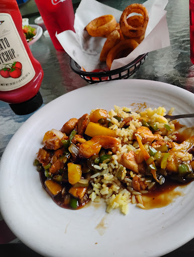 We visited on Sunday afternoon and seated ourselves outdoors in the wonderful weather. The atmosphere however was not at all wonderful due to a table full of guys & ladies who obviously couldn't hear each other so they screamed at each other during our whole meal. I had the chicken kabobs w/pineapple & for an additional $2 I subbed onion rings for broccoli. The kabobs were non existent but the dish was delicious. However I left still hungry as did my wife who had the vegi quesadilla which was also delicious. If we return I'll try a sandwich, maybe that will fill me up. And maybe it will be...