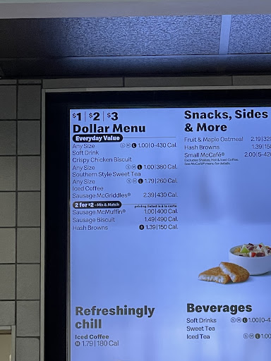 I decided to carry-out because I've had poor luck with drive-thrus in general when there are multiple people involved. I ordered a bacon,egg, and cheese mcgriddle meal, an order of (per the exact wording on the menu) "3 hotcakes and sausage", and two crispy chicken biscuits. It rang up to $29.xx. The person taking my order misunderstood and thought I wanted three orders of hotcakes and sausage. Understandable. She had to call the manager up to cancel two of them. Now it rang up to $21.xx. I figured there was still a problem but I stepped off to the side after paying because I didn't want to hold up the line that had formed behind me. Off to the side, I realized that the charge for two crispy chicken biscuits was $6. I ordered off the value menu and it clearly showed that they were $1/ea. I asked the girl who took my order and she said that they were $3/ea. I showed her the menu where it clearly showed they were $1. She called the manager up again and I could tell the frustration was building; this was the second time I've had her come up in three minutes. She said the biscuits were $3 and there was nothing she would do. I took a photo of the menu, accepted the $4 overcharge and lack of concern by the restaurant and left without saying anything else. I've studied the photo I took and don't understand how they could be any other price than $1. I never would have ordered them if I had known they were that much. There are much better options for the price.