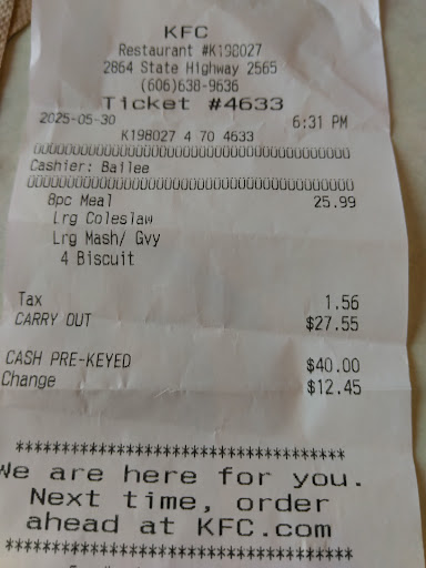 Read moreThe drive thru is expensive but the buffet is affordable and the cleanliness of the place is fair. I went through the drive through and ordered 2 of the $5 buckets which contain 6 pieces of chicken each. They said they didn't have enough chicken for the order since it was close to 8pm (they close at 9pm). They told me they could make a 12 piece dinner with 6 buscuits and 3 sides for $31. That would be $10 for the chicken and $20 for the sides? Umm....... No thanks..... This is the 2nd time this has happened. ...