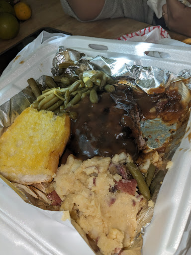 No steak sause no potatoes or green beans still charged full price was not good steak wasn’t satisfied
