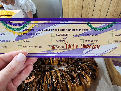 Read moreThey have a variety of king cakes that are absolutely wonderful and they make them daily in house. I grabbed a loaf of bread that was still warm....OMG if you love warm bread, theirs is phenomenal! They have plain, turtle cheesecake, funky monkey, raspberry cream cheese and other varieties of king cakes. Best I have tried. You can also get pastries and pieces of king cake to go. The bakery is wonderful. The picture is the funky monkey king...