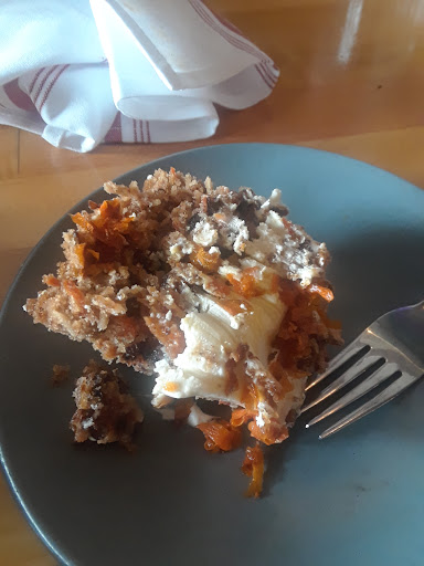The grand finale which made me feel like I was in a Food Insider video was the carrot cake! It is a massive 3-layer slice of carrot cake, packed with nuts with a divine cream cheese frosting and topped with crunchy candied carrot shavings (how perfect is that?), and some caramel. It can serve about hmm.. 1 to 10 people lol