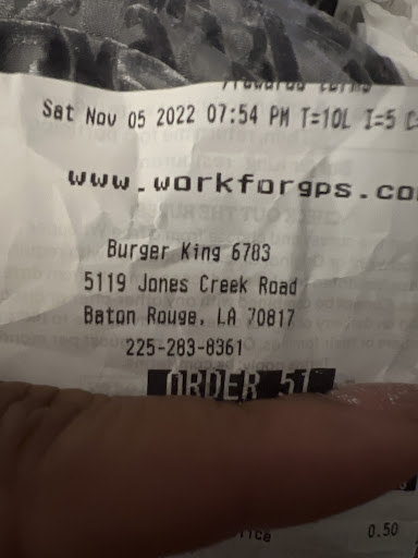 Read moreFirst, I rarely eat at Burger King but my wife and I had decided to give it another go. The new Ch'King looked pretty good. We put the app on our phones and placed an order with the Jones Creek location, which the app suggested as our closest store. It allowed me to place the order and use GooglePay to complete, giving me a receipt and order confirmation. When I got there, after waiting 6 cars back, I gave the cashier our order #. She told me, in a very aggravated voice, that they don't take app orders because their computer has been down for weeks and that they've been reporting it but its stil not fixed . I said "Well the app allowed me to order and charged me $17." She got even more aggressive, telling me "too bad, there's nothing they can do you'll have to call customer service, etc"... she was rude, arrogant and exhibited no customer service skills at all. 1) this person working the drive through on the afternoon of 7/31 needs to be fired. 2) The Burger King app itself is a horribly designed platform for allowing orders to go through to paid completion for this location - I am sure our order was not the first to fail. 3) Burger King did refund me after filing a ticket in the app, but didn't seem concerned the app functioned poorly or that their employee / store location treated a customer so rudely. I can assure you, I will never eat at Burger King again, and will continue to write reviews telling all to steer clear of this particular location and Burger King in general. Poor management, poor employees, poor app, poor company. Funny, I learned that day that Wendy's had just moved into 2nd place in th fast food market, dropping BK to 3rd. Not surprised at all....