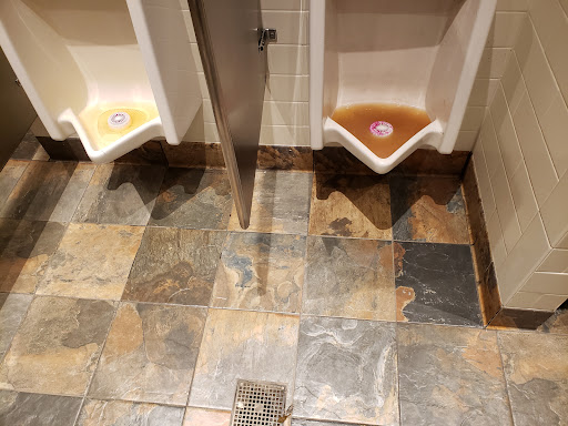 Finally, cleanliness. While the dining area was nice and spotless, the bathroom was gross. A urinal was marked out of order, but appeared to have sewage or something foul smelling backed up in it. One of the clamps holding up a divider was broken. The entire floor along the back wall was wet. Countertop is not sloped properly to sink leading to standing water on the counter which overflows onto the floor. I'm used to finding restaurant bathrooms like this around here,...