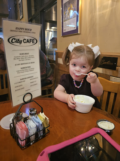 Another Review: My ladies group went again tobight (1-11-24) and this time my 2 year old joined. I can not recommend City Cafe enough! We were on our way out and my daughter said "potty mommy", so we ran. #pottytraining Well when we came out she asked for her chicken strip left overs and I realized I forgot them at the table when we ran to the restroom. Afterwards, we hurried to the room we were in and it had already been cleaned up. How dare they be SO efficient! Lol... My daughter looked up at the waitress with "those eyes" and I asked ooook.... how much for another order to bring home?! Well she went and spoke with the manager, who had already been in our room loving on the babies and approved for her to get her another kids meal on the house! Not only that, but when our waitress took our group picture at the end of our dinner, she overheard me tell Madison if she smiled I'd get her ice cream on the way home. #briberyworks So while we are waiting on our kids meal, Kaci our waitress asks if I was serious about the ice cream and then says, "I'll be right back!" She then returns with a cup of vanilla ice cream and my daughter is on cloud nine! The food, atmosphere and staff are top notch! Robin the manager and Kaci our server went above and beyond and I not only praised them on social media, but had to come straight to Google to write another review of...
