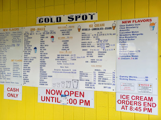 CASH ONLY. Be prepared for that. Great local spot for a sno-ball. Lots of flavor choices. Additional snack items available. Biggest prob: no seating & no cards accepted. The seating thing can really be a safety issue. Their parking lot is very close to their queuing area. That means that little kids running around waiting or enjoying their sno-ball area very close to cars pulling in or leaving. If there were a few picnic tables, then you can more easily plant them...