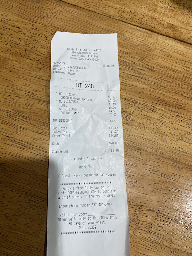 Read moreI was raving about how much I loved DQ to my husband. I ordered my favorite Chicken strips, gravy, Texas toast and fries and my husband ordered the Alaskan Fish sandwich along with the shrimp basket. When we got home I attempted to sneak one of his shrimp without him knowing and to my surprise his shrimp basket appeared like leftovers. I couldn't even take one of his shrimp without him noticing because he literally got maybe 7 shrimp and a kids meal serving size of fries. I was terribly disappointed for him an warned him that he may be disappointed. He opens his box and is thrown back by the fact that the order came close to an unfinished kids meal rather than a full size shrimp basket. My husband never gripes or complains but in this instance he requested I write a review. He also found the fish sandwich subpar, the bun was falling apart and the taste was just off. He said he's never eating at Dairy Queen again and I'm sad because I love the chicken strip basket....