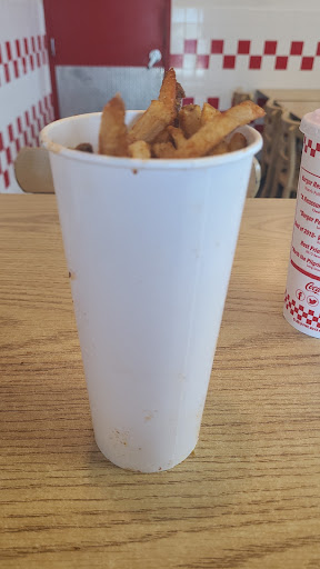 Read moreMy burger(cheeseburger 9$) was small & NOT hot, considering its cooked to order!! It was barely warm at best!! Bun seemed a bit stale as well. The fries were Hot (5$) but, not cooked all the way through!!! Still firm in the middle! I should have known when my food was ready in less than 5 minutes. Other 5guys restaurants I've eaten at, it usually takes a bit to cook. But not here. I don't mind paying close to 20 for a meal,,,, IF ITS WORTH IT! But this was not!! I was disappointed at the quality of this food and the service was not the best either! Majority of crew didn't speak English. Which isn't a problem till u have questions. I asked about how big the bigger burger was from the little one. The register guy asked the cook cause he didn't know n the cook lady just kept pointing to the grill with a couple patties on it. That told me nothing!! Review is make food to order so it hot not warmed up at best especially at the stupid high prices being charged, cook fries all the way through , use fresh ingredients n have employees that can speak English in some form...