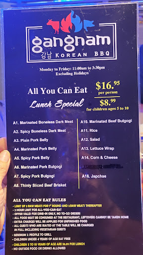 First of all, at most, you know for fact that in âall you can eatâ, speed is the key. we ordered some beef brisket and the waiter ( claim to be the manager) came and put the gas level to 2. remember, it only goes up to 3 in this restaurant and it takes million years to cook one thin slice brisket if you put the fire lever in 2. i put on the 3, and the waiter kept coming back and adjust the level to 2. we have done this non stop adjusting for more than 30 times. he thinks that it was funny but it was rude and obnoxious. he made us think that it was against the fire code which adjusting fire level from 2 to 3 and it was just ridiculing us entire time.