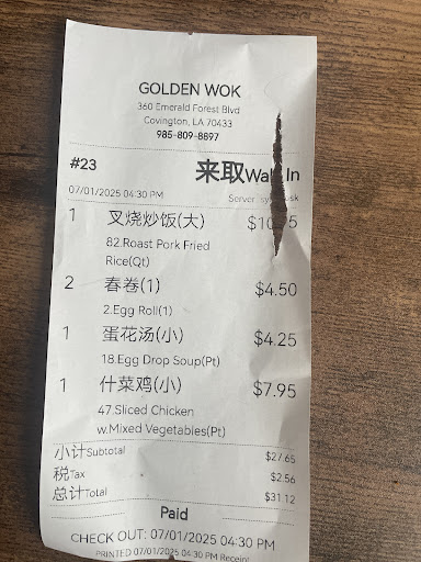 *I DO NOT RECOMMEND! DO NOT WASTE YOUR MONEY! My usual place was closed and I had a craving for some Chinese food so I popped into this place, ordered and waited while they made my “freshly cooked” order. This place is absolutely terrible. I ordered the mandarin chicken combo with “pork” fried rice and egg roll, an egg drop soup and an order of fried wontons. The chicken is so thinly sliced, I’ve had potato chips thicker than this. The batter on the chicken is perfectly golden brown and just sets you up for the disappointment of what’s inside. The chicken, being so thinly sliced, is dry and hard. The mandarin sauce for my chicken is the color of the spicy mustard packets but I wasn’t lucky enough to have it taste as good as that little packet. Nothing like any mandarin sauce I’ve had anywhere else. The “pork” fried rice has 2 itty bitty pieces of pork (so small, the cube of carrot, yes, singular carrot, was 3x’s the size) and the rice is crunchy, tasteless and, of course, dry. My egg roll is so deeply fried, it’s a reddish brown , almost the color of our red dirt, and rock solid. The egg drop soup, well, it has the consistency and taste of a busted egg yolk, thick and flavorless. The fried wontons, you guessed it, hard and overcooked! Deep fried like they were frying it long enough to magically turn it into acrylic. Next time, I’ll hold tight to that craving and wait for my go to...