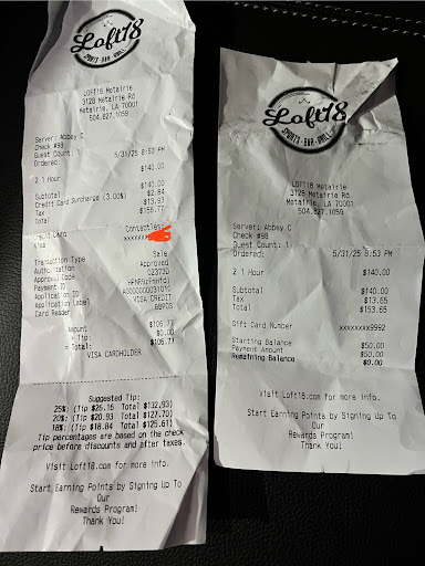 Ā Ā Ā Read moreGreat food & cool atmosphere but sketch service. CHECK YOUR BILL! It was my wife's birthday & we decided to stop in for an early dinner. They were just opening for the day & we had the entire place to ourselves. We loved the atmosphere & vibe, Sarah L was our waitress.We tried several times to make conversation with her but that went nowhere! We ordered 4 house wines during our meal & were pleasantly surprised to find out that it was happy hr so the $6 glass was now $3. When we were finished, Sarah came over & asked if we wanted to just give her a card & sign/ pay for our bill or if we wanted to view a hard copy of it. I looked at her screen & noticed she had already tipped herself 20% ($15.60). I was a little put off by this & adjusted tip & then asked about the happy hr price for the wine. Sarah assured us that it was indeed at the correct price. I signed & after she left did the math after receiving a copy of the receipt. The bill was way off (almost $20), no happy hr pricing & her behavior left us wondering,"why the hustle?". We had her fix the bill only to have her say,"I kept my tip the same, you can adjust it if you want". Still have to ask, "why the hustle?". Yeah, that tip got changed & in retrospect, Sarah's lucky I even tipped after that. Both my wife & I are in the service industry & tip more than generously when (here's the key) service deserves it! Behavior like this is so unnecessary & really begs one to question the establishment &...