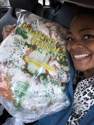 This is my FAVVVVVVVOOOOOOOOORRRRRRRRIIIIIIIIIIITTTTTTTEEEEEEEEEE place in all of the NOLA to get a Mardi Gras King Cake. You can smell the scent of cinnamon in the parking lot, even on a cold, windy morning like today.