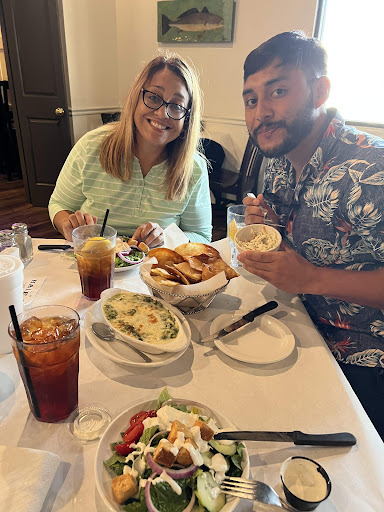 Read moreWe had the best lunch ever! To start off, we ordered the spinach artichoke dip with fresh warm pita chips. It was so delicious! Side salads were cold and fresh! Ordered the New Orleans style BBQ shrimp with garlic mashed potatoes, Fried half shell seafood platter with seafood gumbo, coleslaw, and fries, Asiago Chicken with garlic mashed potatoes and grilled veggies, and a Kids Grilled cheese with fries. All these plates were a 10/10. Very delicious and tasty. All made from scratch. Then for dessert we didn't what to choose from and ordered the pecan bread pudding with lots of praline sauce that had just come out of the oven freshly made, a raspberry cheesecake, and a lava cake with lots of whipped cream. All the food was great. You can really taste the freshness in each bite. Even their sweet tea with fresh lemon was awesome. We had the best waitress ever, Mindy. She gave us the best 100% service ever. Highly recommend the Half Shell. Make sure to stop by and say to Mindy the Gonzalez family from South Texas...