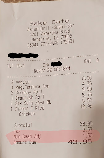 Read moreMy sister and I have been to Saki weekly for about 4 months. She had been there longer than me. The wait staff is amazing!! About a month ago I found plastic in my rice. I told the waiter and she brought another bowl. Today my sister and I went to eat and I found paper in my rice. I requested to speak to the manager and told him what I found. He brought the papers back to the chef and he said it was from the sushi. I said I was upset because I found plastic and paper in my rice. Not only was the manager apologizing he was not in the least bit worried. The shrimp tempera was always amazing!! I assured the waitress that this would not affect her tip which I tipped her 25%. After I paid I went to speak to the manager and I told him how unhappy I was with his response. He not only did’t apologize, he told me it was my fault about the incident! I told him I would never come back again