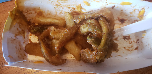 Once home, I opended up the bag to find that the large order of pickle fries were only a quarter full. Most of the cup was empty. What sat at the bottom was a small pile of compacted mush. It was absolutely disgusting. It was wet and none of the batter was even on the pickles.